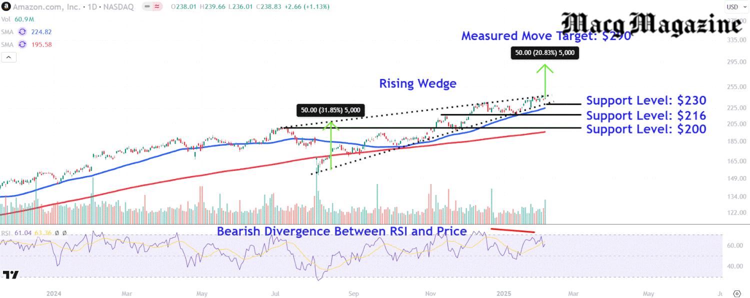 Technical analysts have been keeping a close eye on Amazon’s stock. Currently, key support levels, which are prices where traders might consider buying to prevent further losses, are identified at around $230, $216, and $200. However, due to the recent news, there are concerns that the stock may test these support levels in the coming days. If the stock rebounds, traders hope to see a price target as high as $290, but much will depend on how the company manages its challenges going forward.
